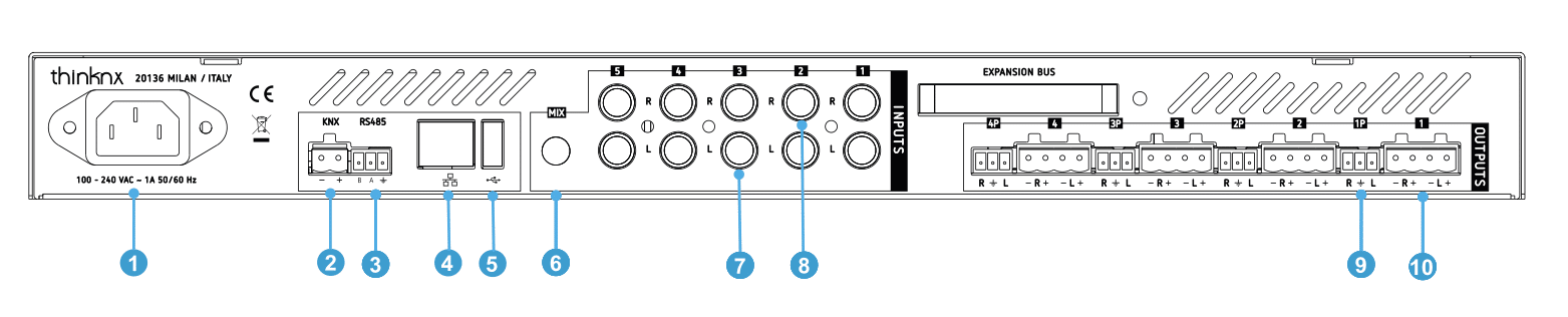 - Before powering up, make sure that all the connections have been made correctly and the voltage of your mains corresponds to the voltage shown on the rating plate on the unit, if not, please contact your Thinknx dealer.