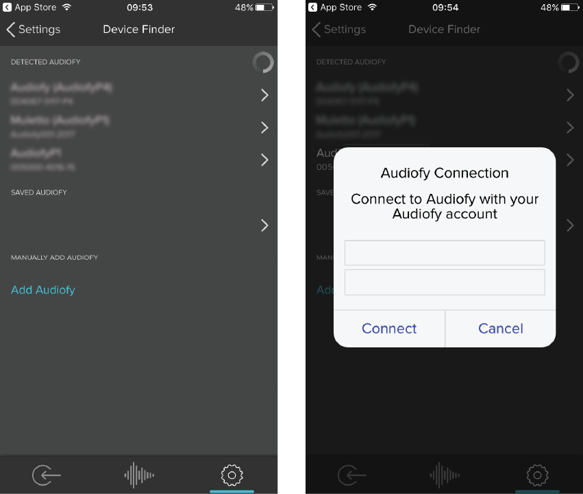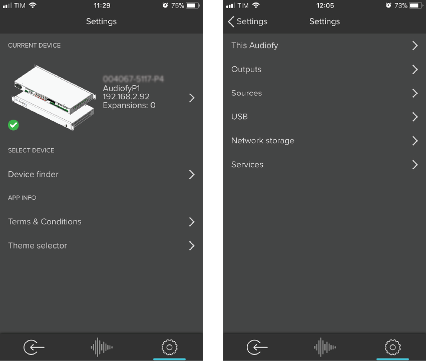 The app can be used only when the mobile/tablet is connected on the same network of the Audiofy via Wifi