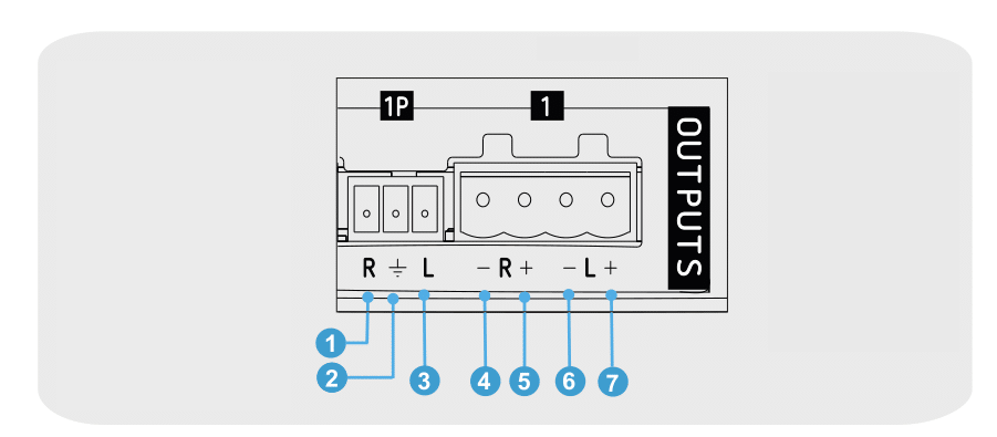 - 4 amplified stereo outputs (50W per channel on 4Ohm speakers)