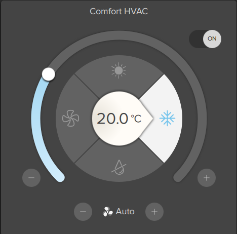Use custom setpoint range If enabled it permits to choose personalized interval for setpoint temperature valuesGroup for cooling KNX group related to the cooling valve.Group for heating KNX group related to the heating valve.Heating/Cooling group KNX group that give feedback about Heating or cooling mode (0 = Cooling / 1 = Heating)- Fan control If enabled the object controls also the fan speed and new properties will be displayed