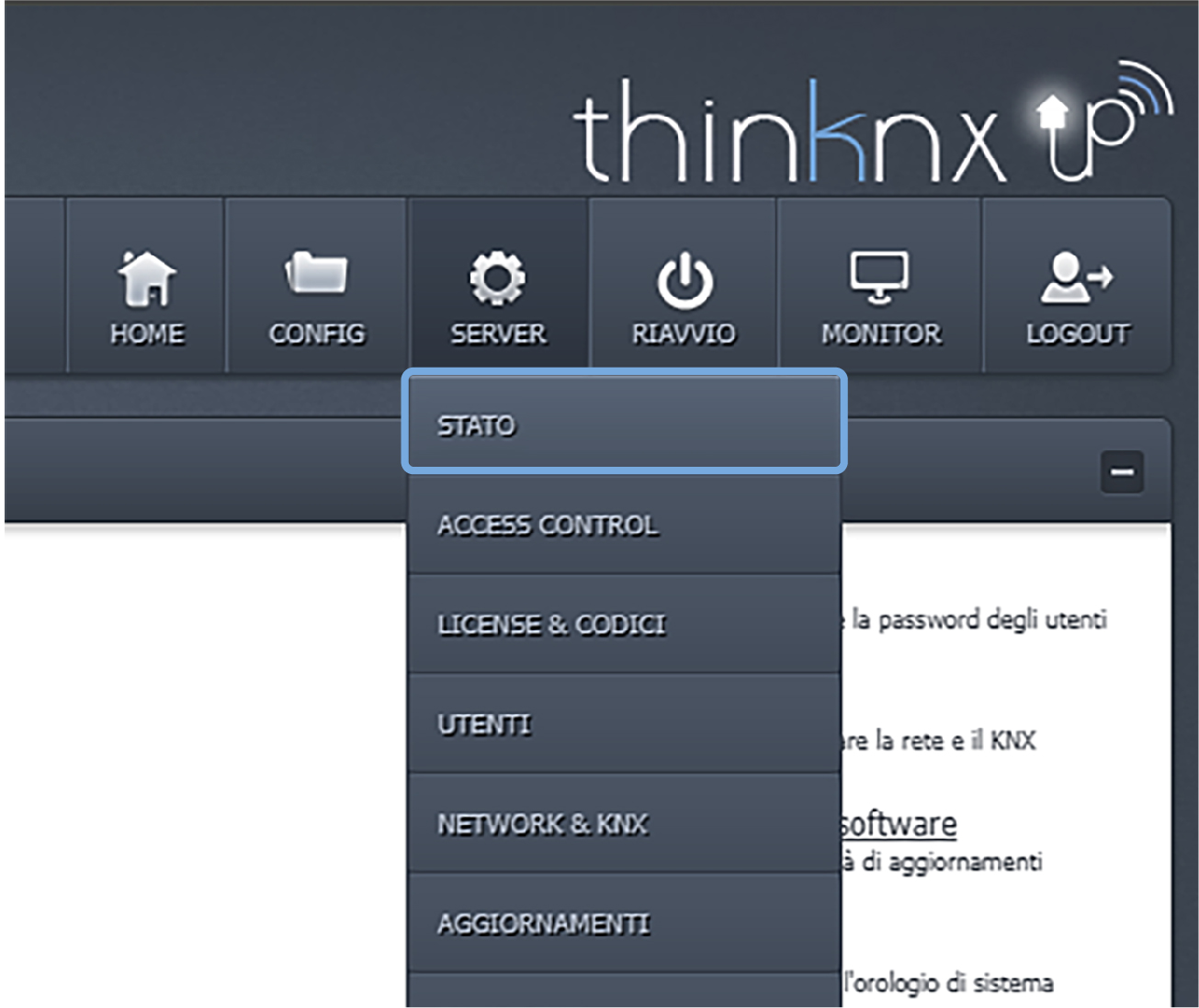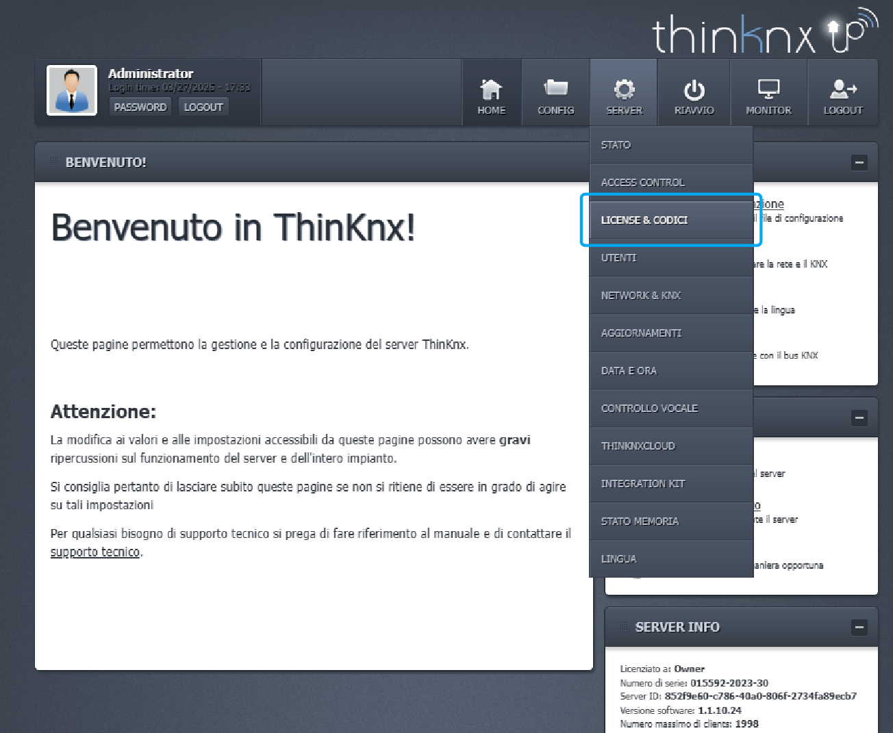 - Step 7 Per verificare che la licenza sia stata attivata, andare in Server → Status