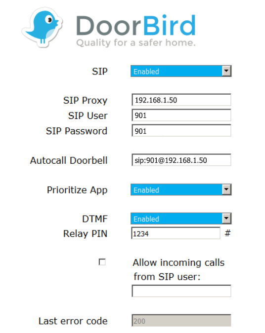 Integration example: Doorbird D10x, D20x