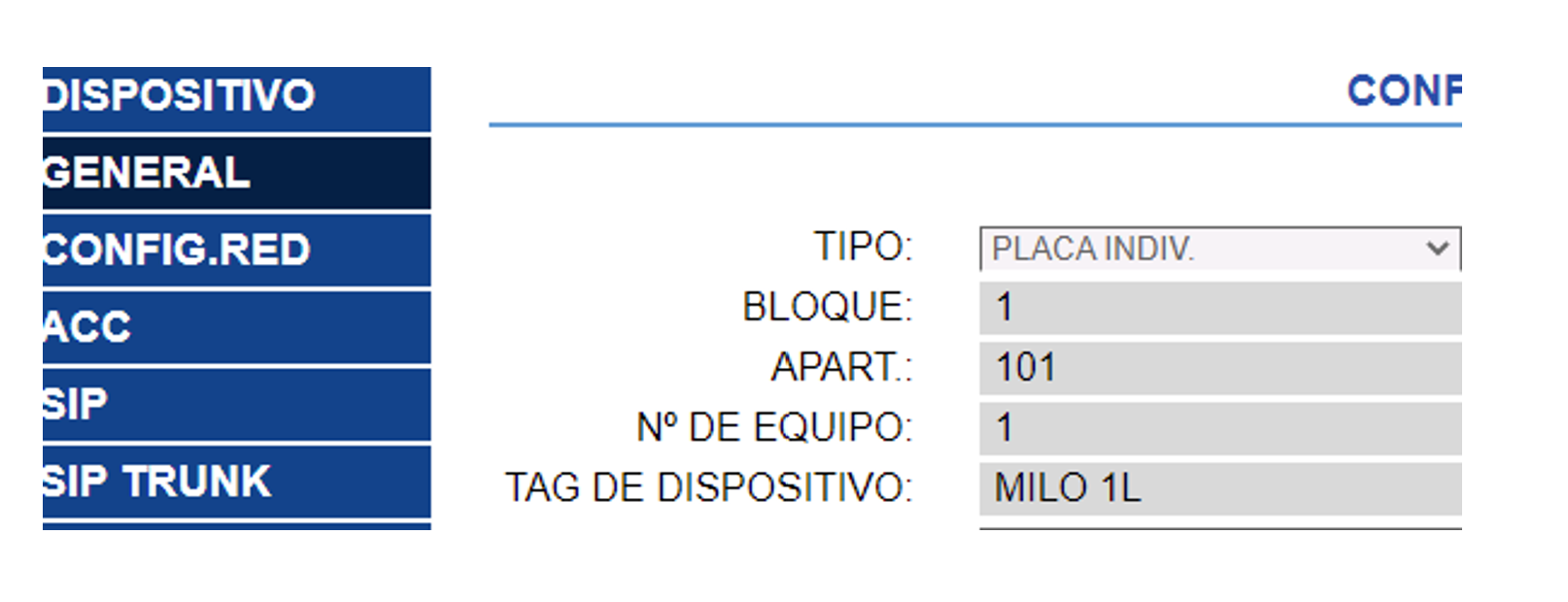 - Username: Username of the intercom device created on the configurator