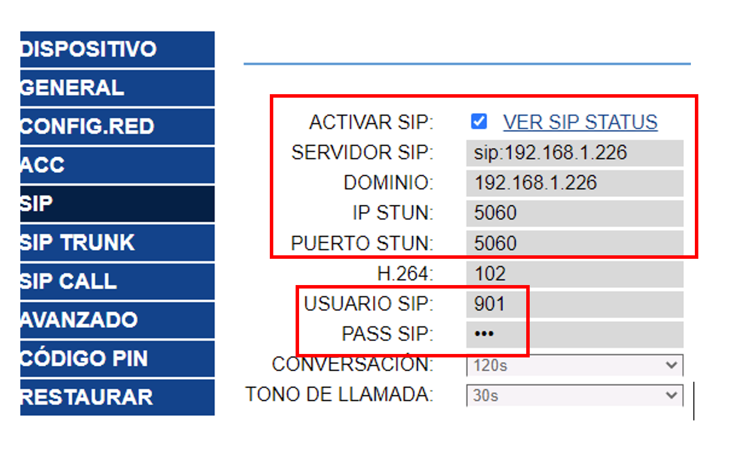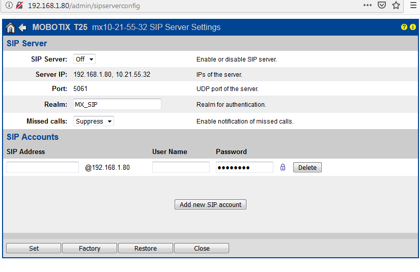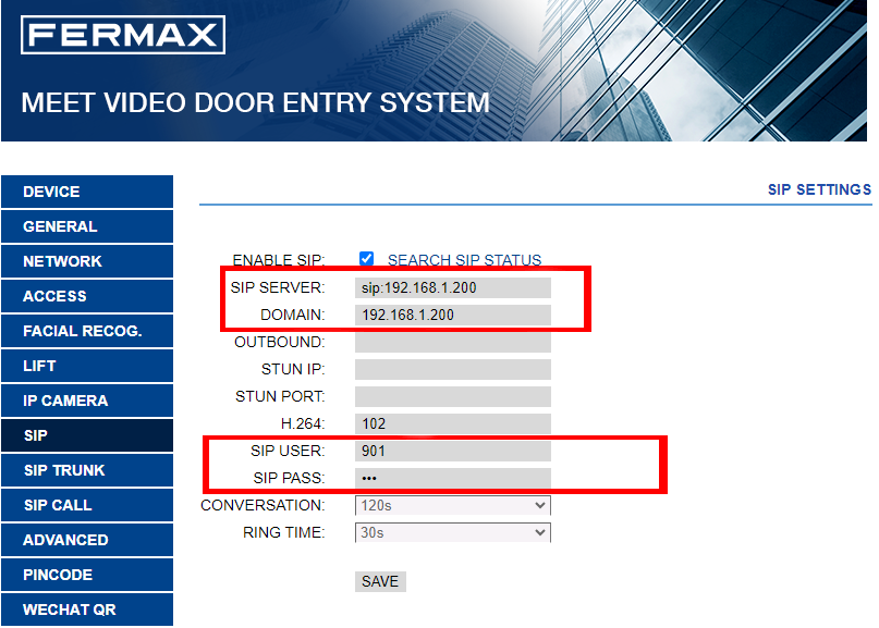 SIP Server 1:- Server IP: ip of the thinknx server