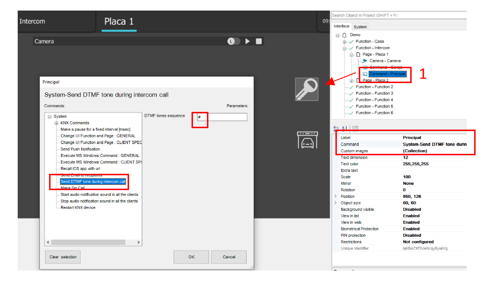 Door Opening In the same page created earlier, add the object “Generic command” and configure the command to send a DTMF tone during the call. Write down the DTMF number or combination of numbers configured on your Fermax intercom to activate the door opener. They can be numeric characters and special characters such as # or *.