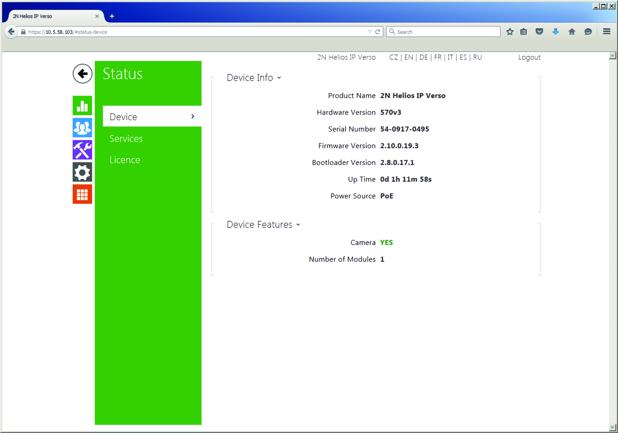 The intercom used in this example is the 2N IP Helios, an SIP Door Station solution with an integrated video camera for monitoring door activity, however, the same concept can be applicable to the other products within the same 2N series. The below configuration was applied to 2N firmware version 2.10.0 (2015), where the following features are supported: