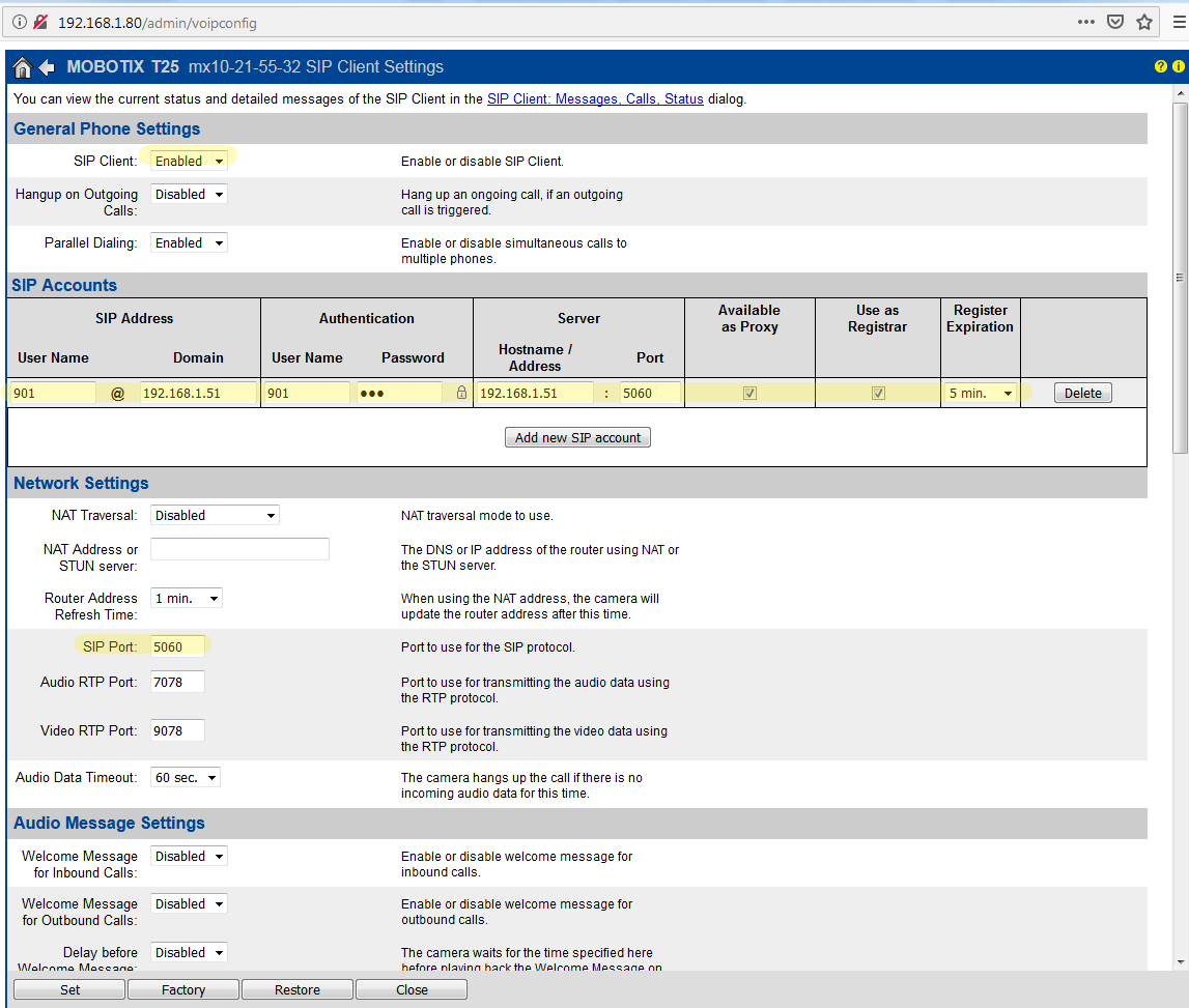 - Set the Phone Number. This is actually the “ID” with which the device will populate in the Thinknx SIP server (901)