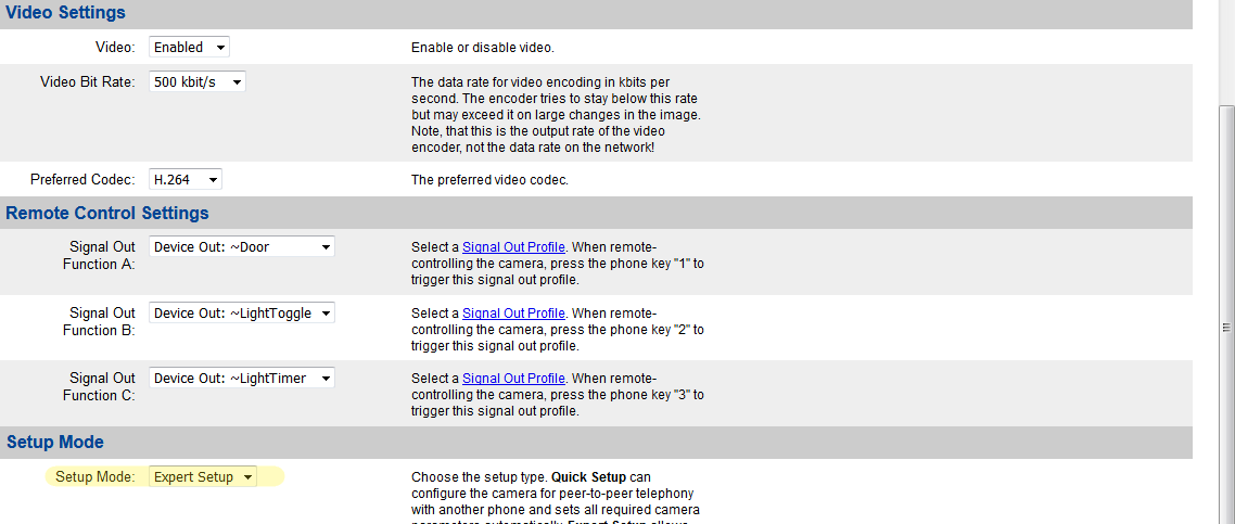 Modify the code to activate an output on the intercom:- If no outputs are available, adjust the settings of the external intercom.