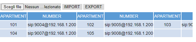 Username web This property corresponds to on of the login parameters of intercom management web page.Password web This property corresponds to on of the login parameters of intercom management web page.Username PBX This property corresponds to the extension used by the intercom to register in the PBX; it is automatically generated and it cannot be edited. For devices the numeration starts from 901.IP address Outdoor station address.Port Outdoor station port.Intercom buttons This property allows to configure the intercom button panel, associating to each button the extension or ring group to be called. Click on the button displayed on the right to open the intercom buttons editor, click on ”Add” and adjust the properties in the grid:- Label: Label associated to the button in the configurator.
