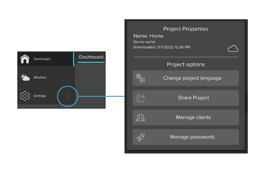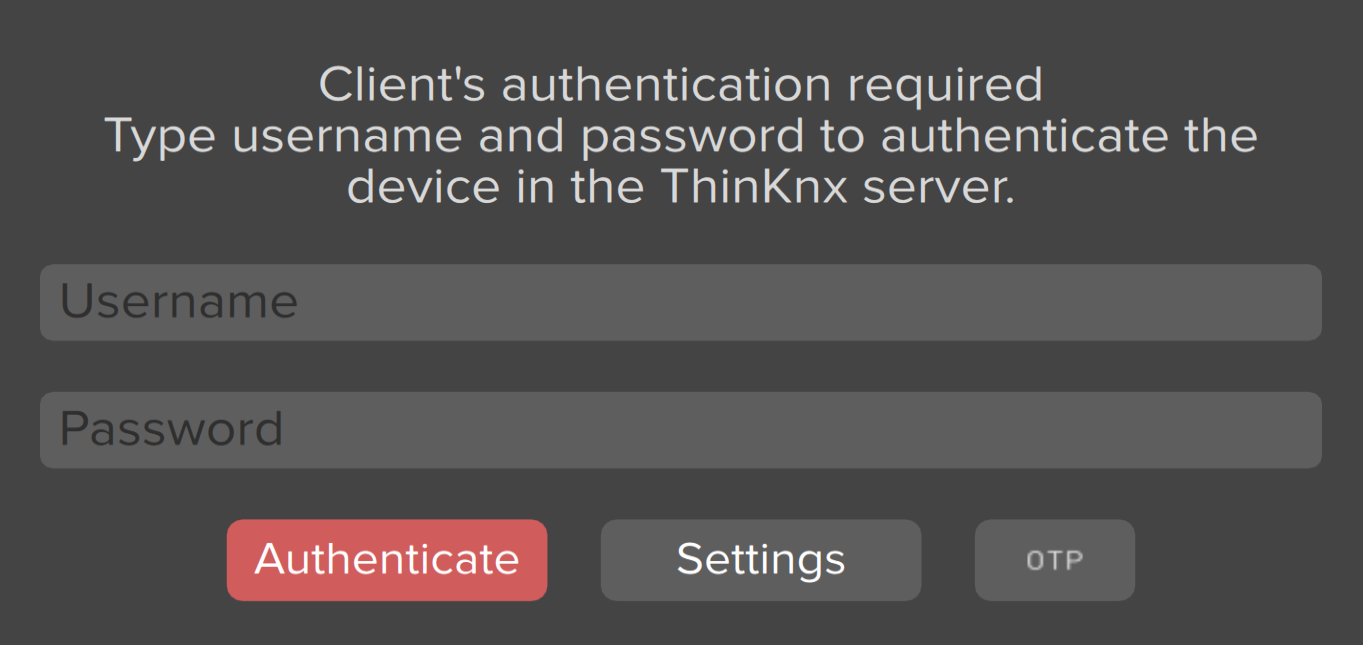 When opening a recently added project for the very first time, an authentication process takes place between the client's device and the Thinknx server. Authentication can be done in two ways: