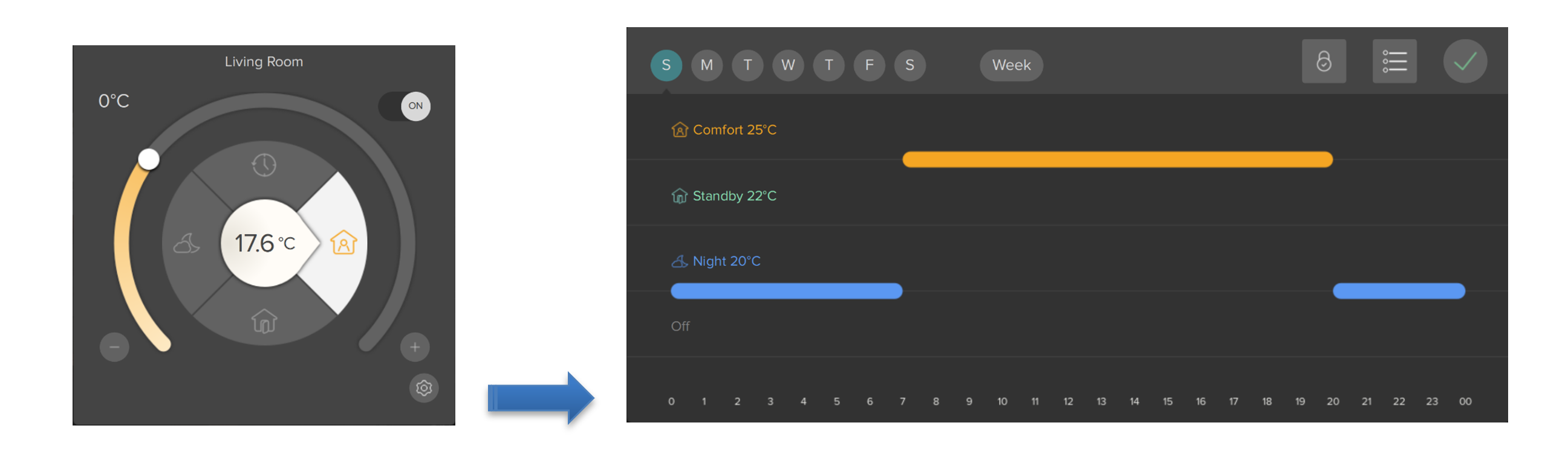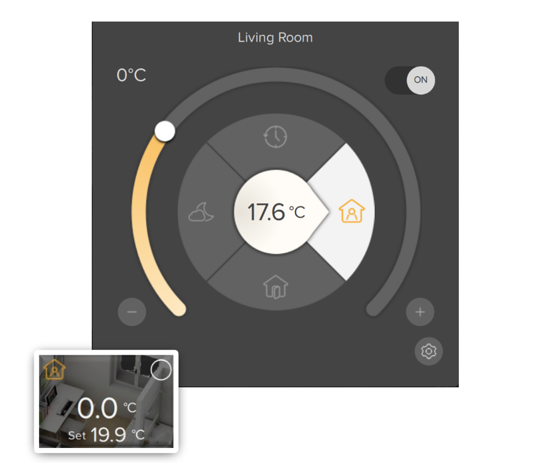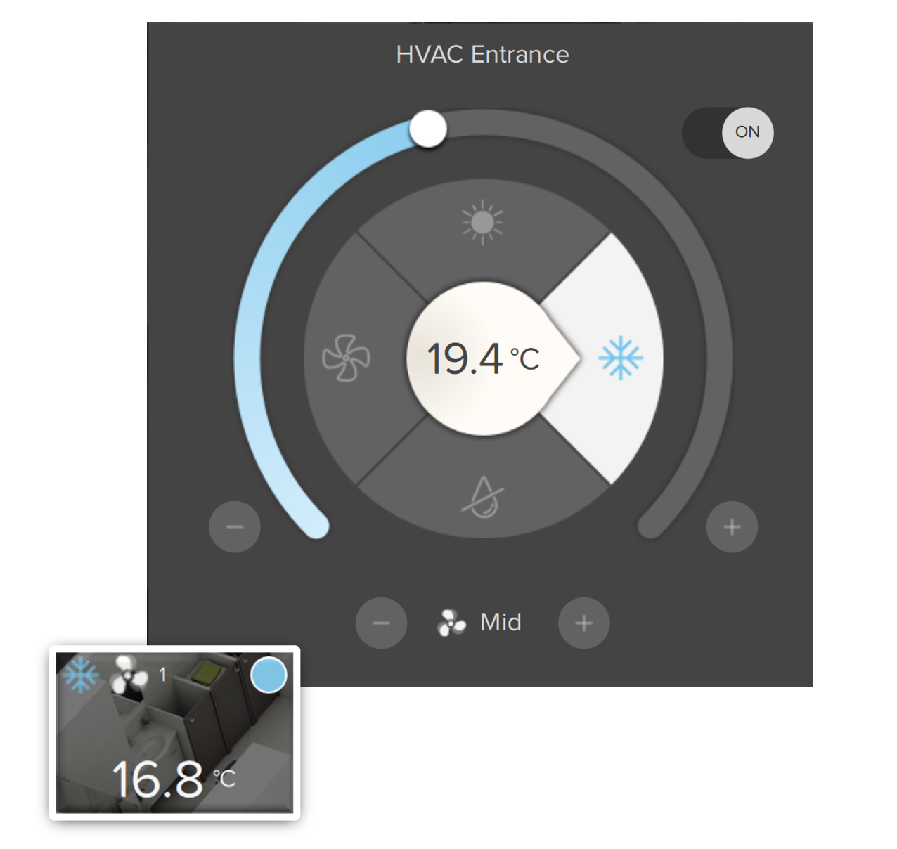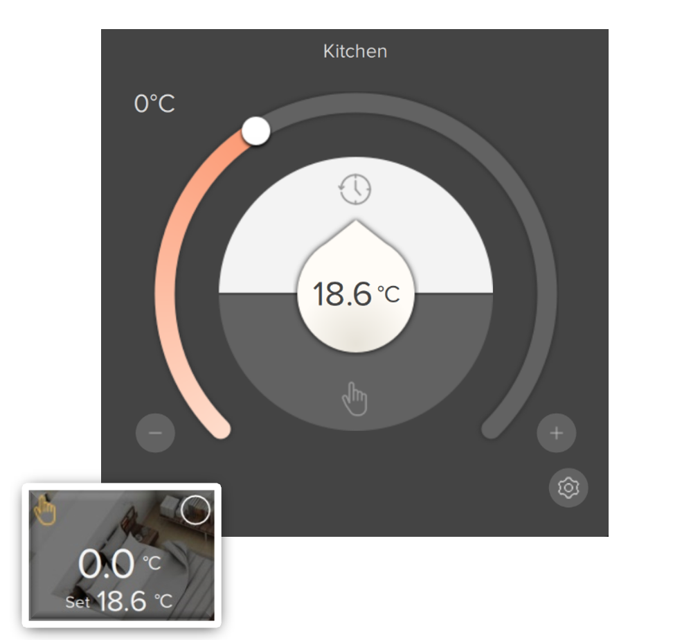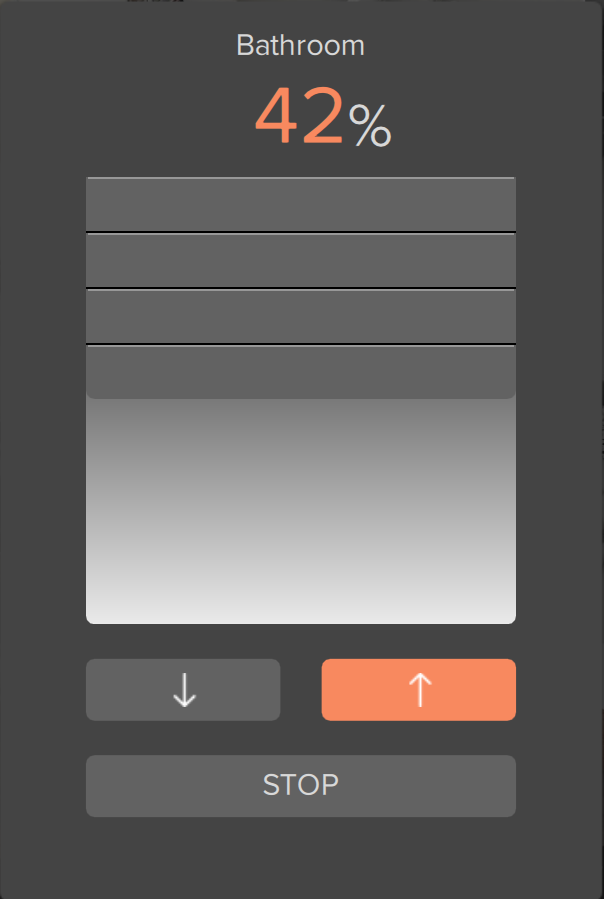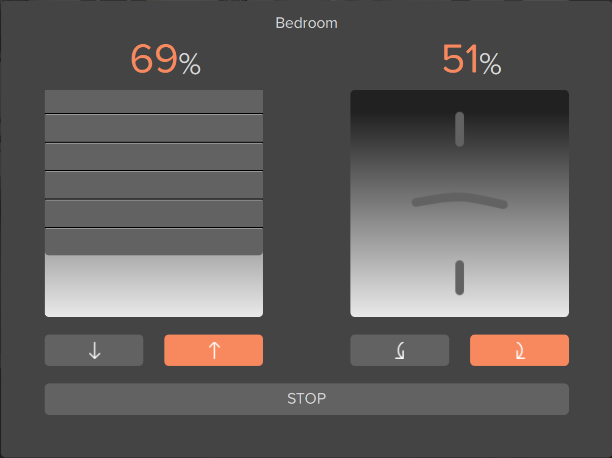 For blinds, the icon will have extra buttons to control the rotation of the louvres to allow more or less light into the room. The user can either operate the louvres using the slider or the buttons underneath.