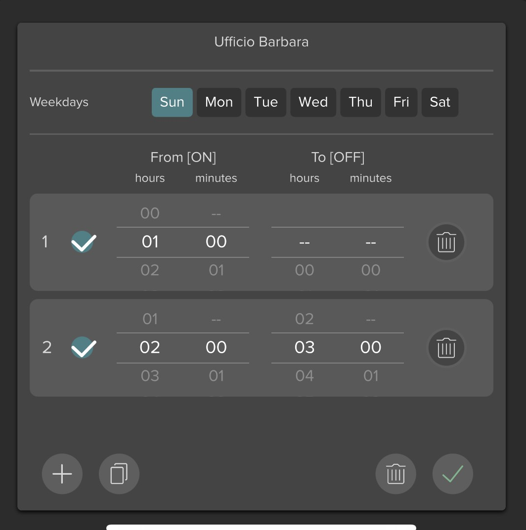 it is possible for the programmer to enable a chrono-switch, allowing the user to configure a weekly schedule for the light. The user can also copy the schedule and paste it to another one.