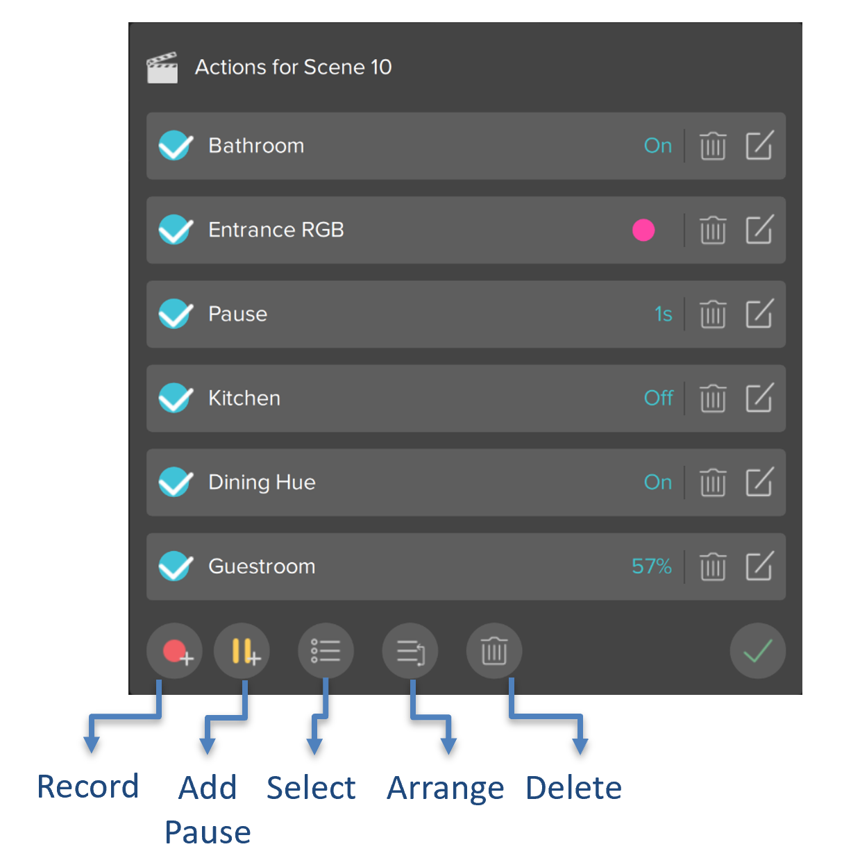 For more information regarding the actions list, refer to section 3.6. Scene.