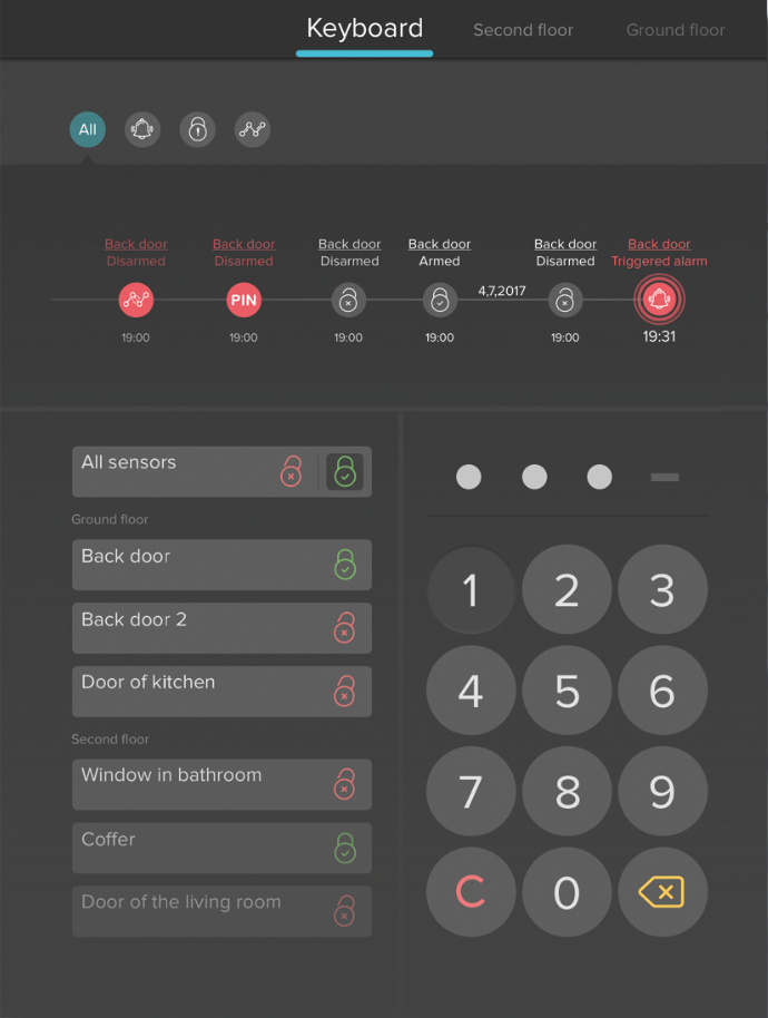 It is also possible to view the status of all the sensors installed and get notification when they are in an Alarm state.