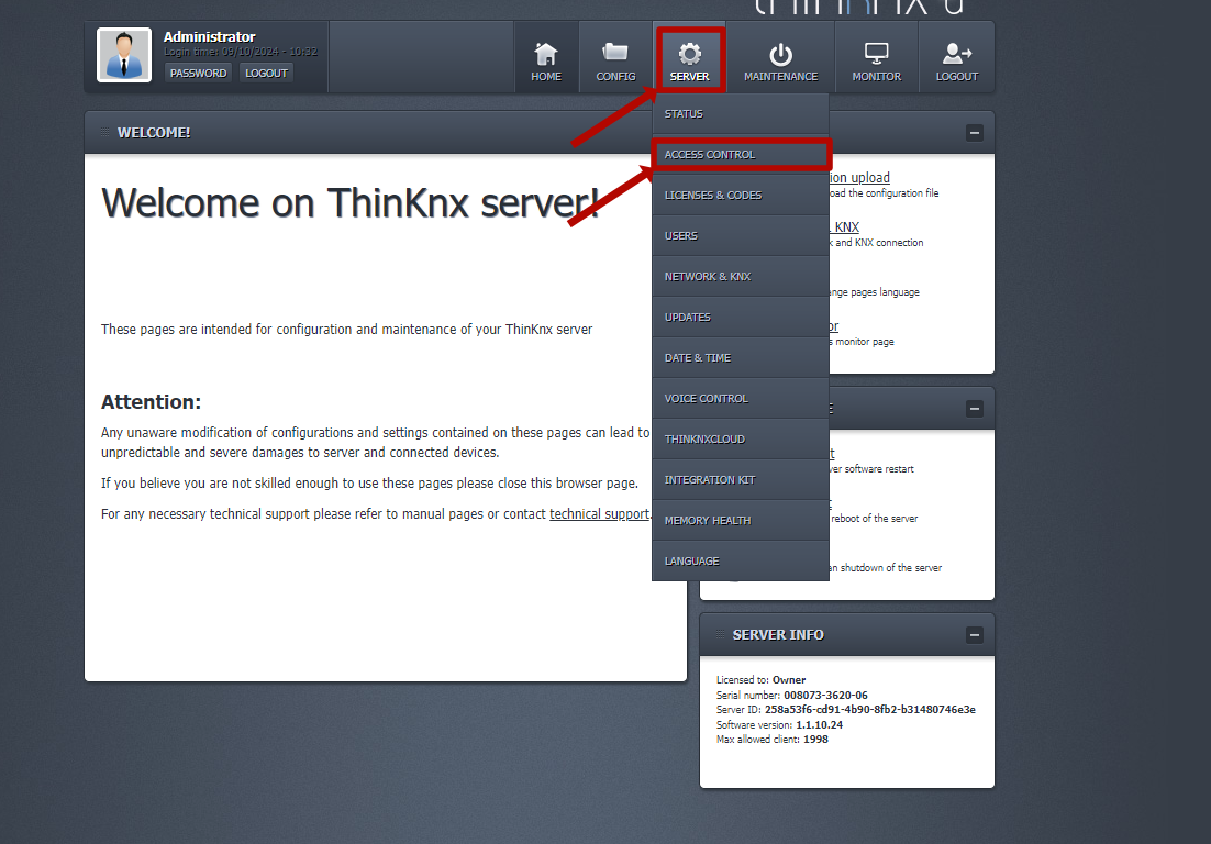 • To allow direct access to the Access Control page, the Manager can use the link below, making sure to fill the proper IP address and password for the server: http://localhost:5051/login.html?login=login&direct_login&username=service&password=password&redirect=access_control_s.html