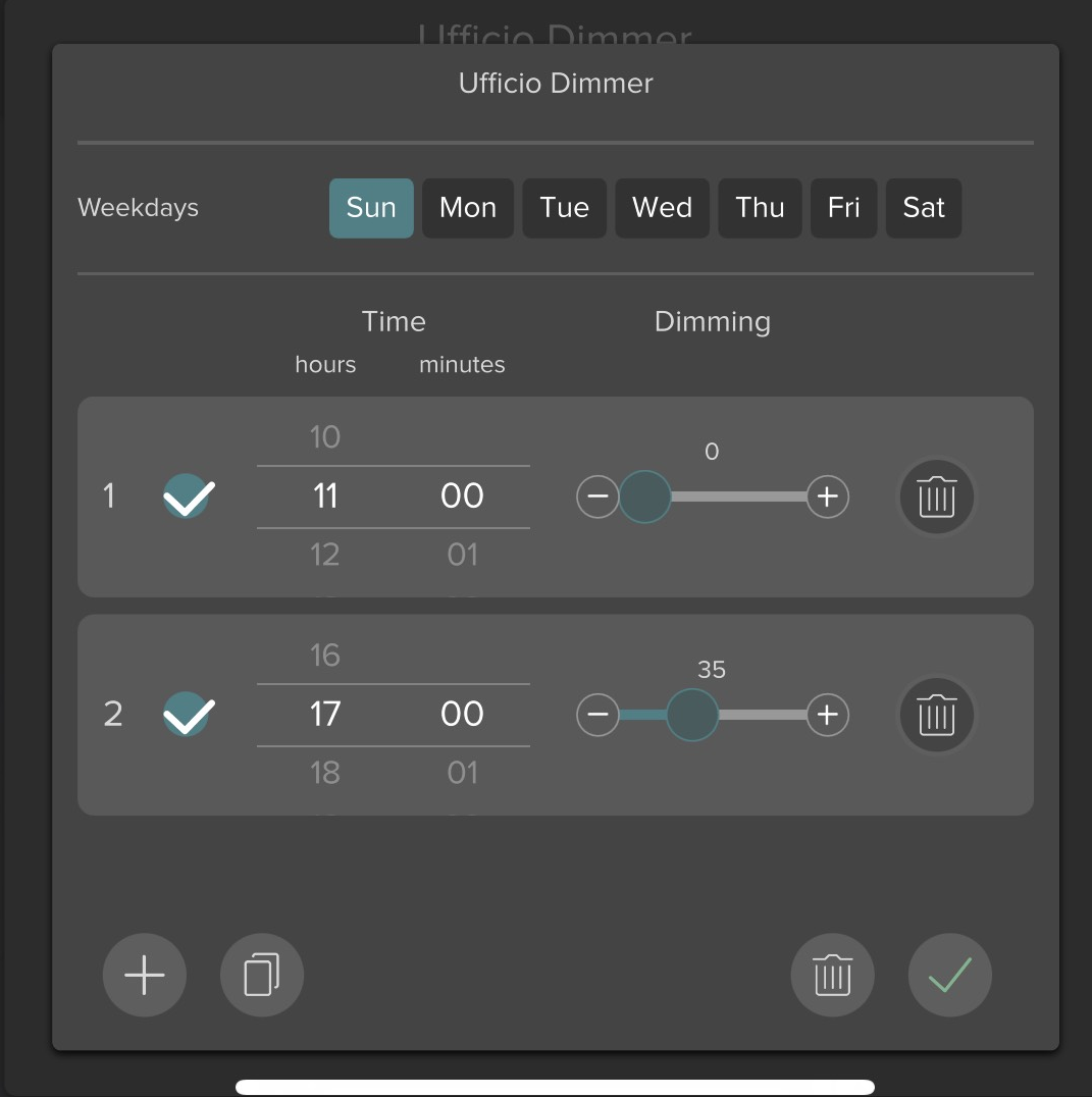 it is possible for the programmer to enable a chrono-switch, allowing the user to configure a weekly schedule for the light. The user can also copy the schedule and paste it to another one.