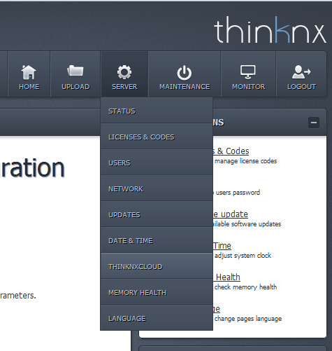 - Password for ThinknxCloud: it must contain the maintainer password previously set in the server web page