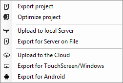 - Export for touch screen Generates a file with .tou extension, meant to be used with the Player for Windows software.