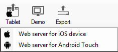 - Web server for iOS device Select this option if the project has to be exported on iOS devices.