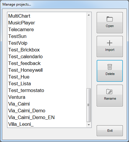A project can be defined as a folder containing all the configuration files related to a specific plant and all the settings needed to reconstruct user interface and system logics. New projects can be easily created directly using the Configurator software. Previously existing projects can be imported and edited (they can be renamed, optimised, deleted, etc).