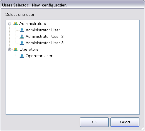The Configurator, if users have been configured in the project, requires to select which user will be the project exportation final addressee. Select the desired user, for example ”Operator User”, and click on ”OK”.