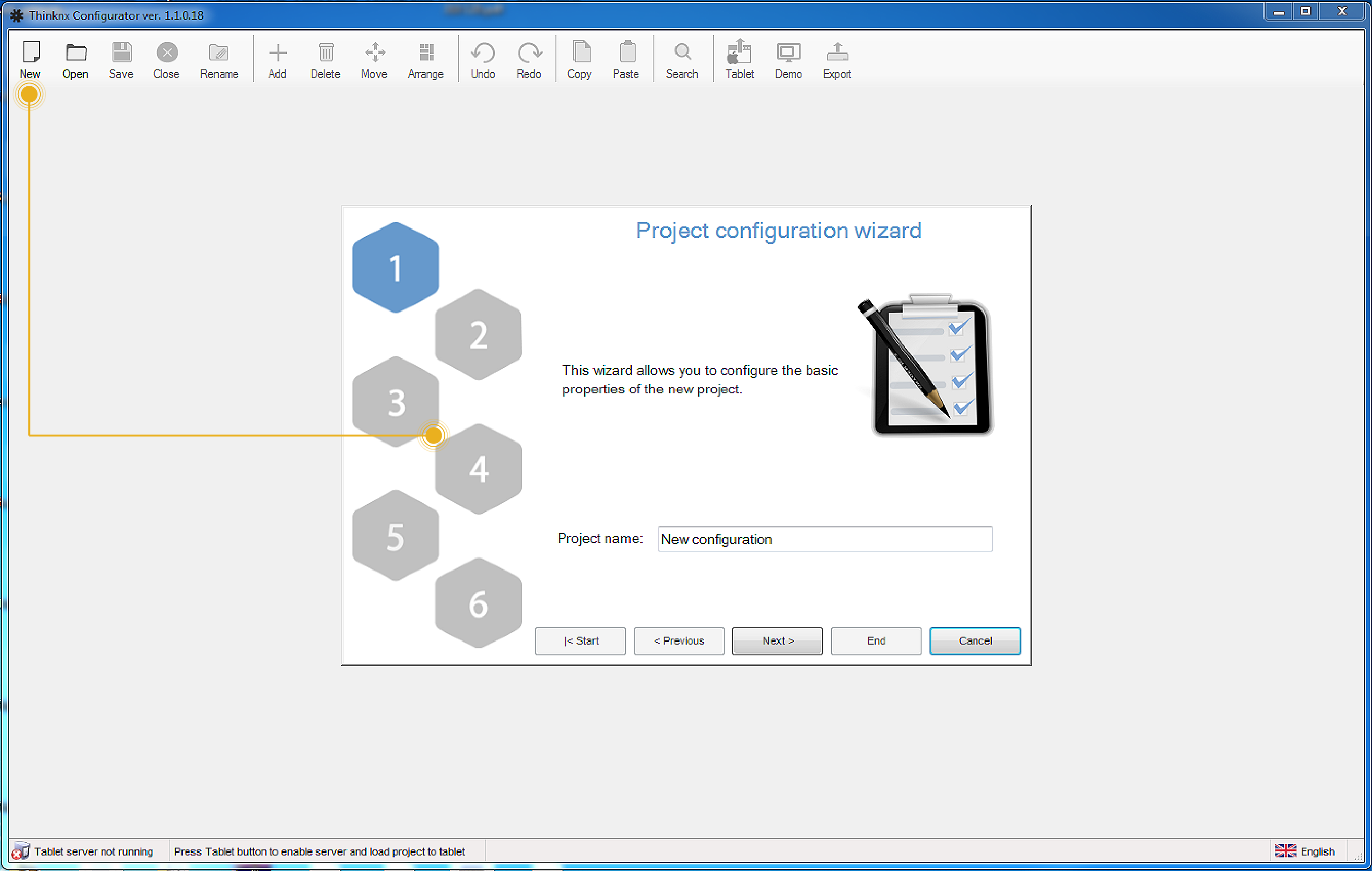 After selecting one of the option, click on the ”Tablet” button and a web server, which allows to directly upload the project on the desired client, is automatically launched in the Configurator: