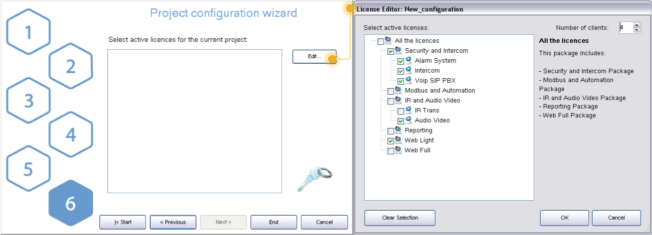 - Step 6 Selecting the active licences for the project permits that configurator checks while exporting whether objects and functions configured into the project will properly work once the project will be exported and uploaded on the server. In fact, if the project contains objects that are not included in licences purchased by the customer, they will not be working in the real installation.