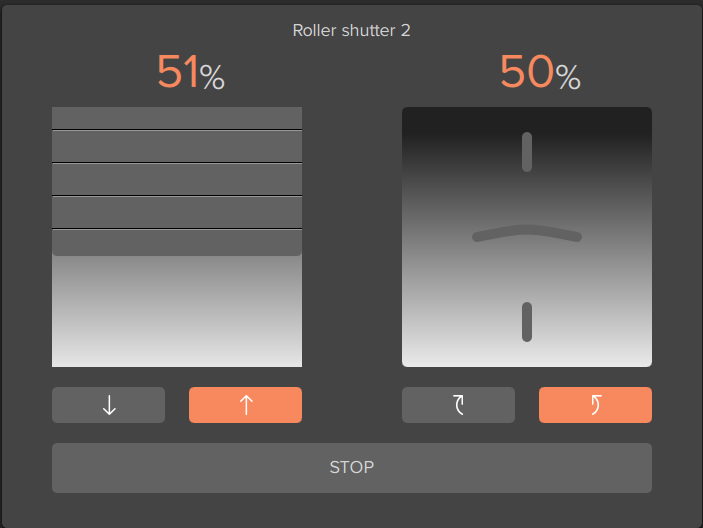 - Stop group: KNX group that controls the rollers stopping. If value 1 is sent, the roller is stopped, if value 0 is sent, the roller starts to move again.