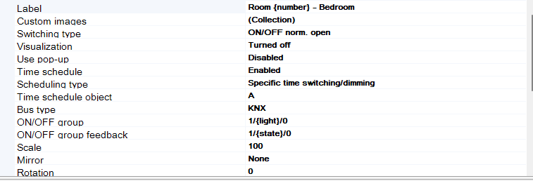 - Run Time View Quando abilitata, tutti i parametri all'interno delle proprietà KNX o stringa dell'oggetto verranno visualizzati utilizzando il loro valore chiaro, altrimenti come chiave del parametro.