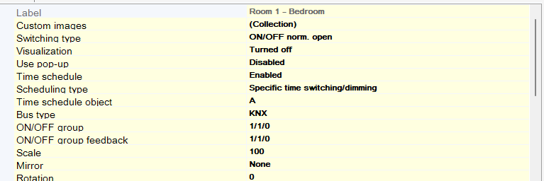 Questo oggetto raggruppa insieme gli oggetti dell'interfaccia, li racchiude in un menu e consente la gestione individuale o di gruppo. Nel caso di un gruppo, consente la gestione dei parametri attraverso una finestra dell'interfaccia, utile ad esempio per una serie di camere d'albergo identiche.
