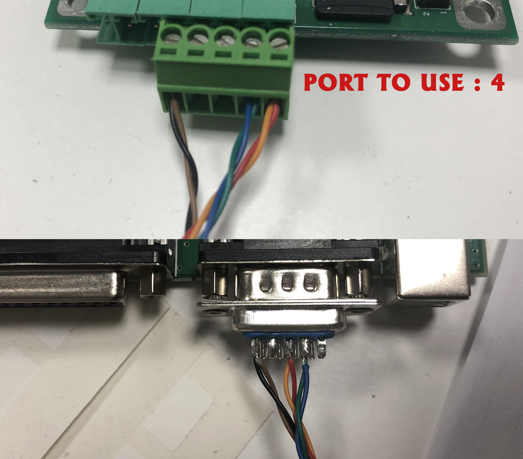 - RS-232 (DB9): use 0.